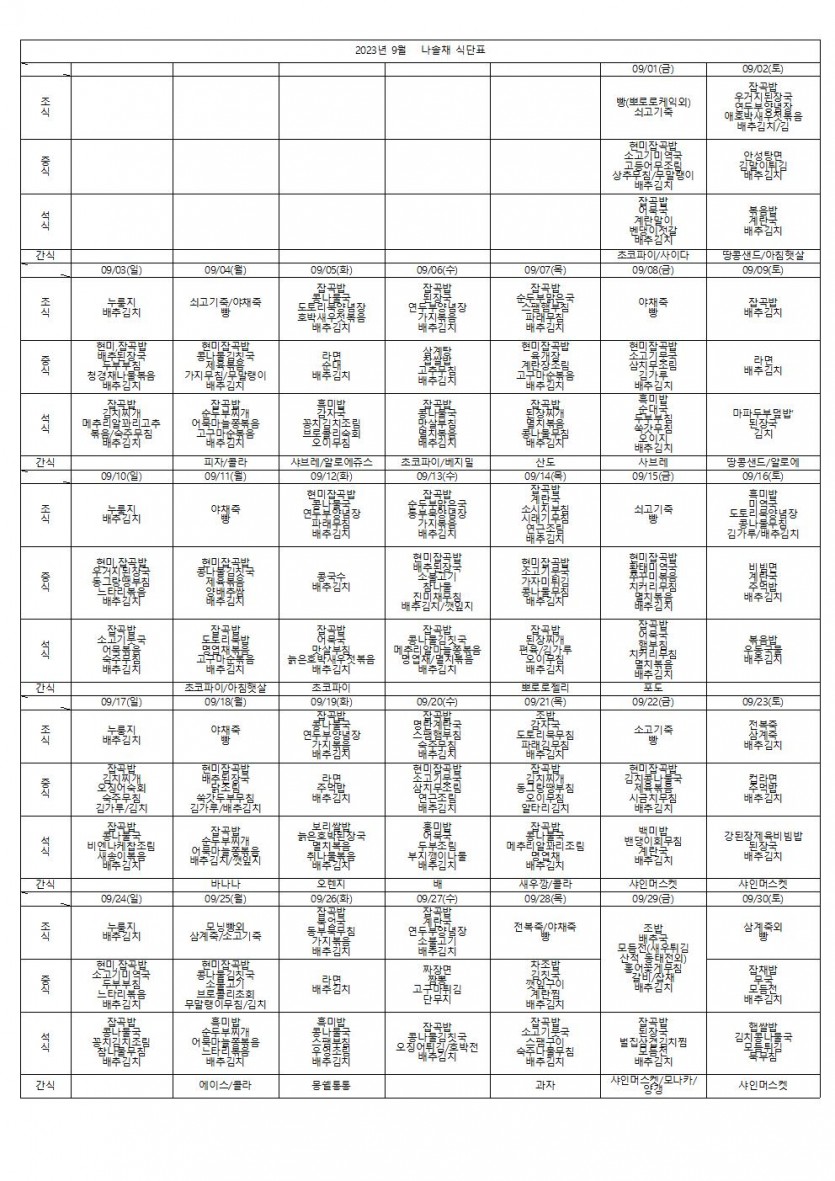 23년 9월식단표 ♥ 페이지 정보 작성자 나솔채 댓글 0건 조회 297회 작성일 23-11-06 13:20 목록 본문 23년 9월식단표 ♥ 댓글 0 댓글목록 등록된 댓글이 없습니다.