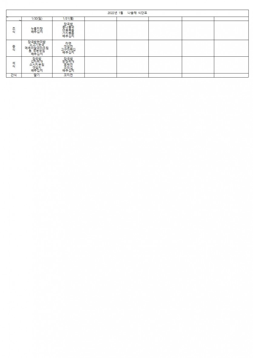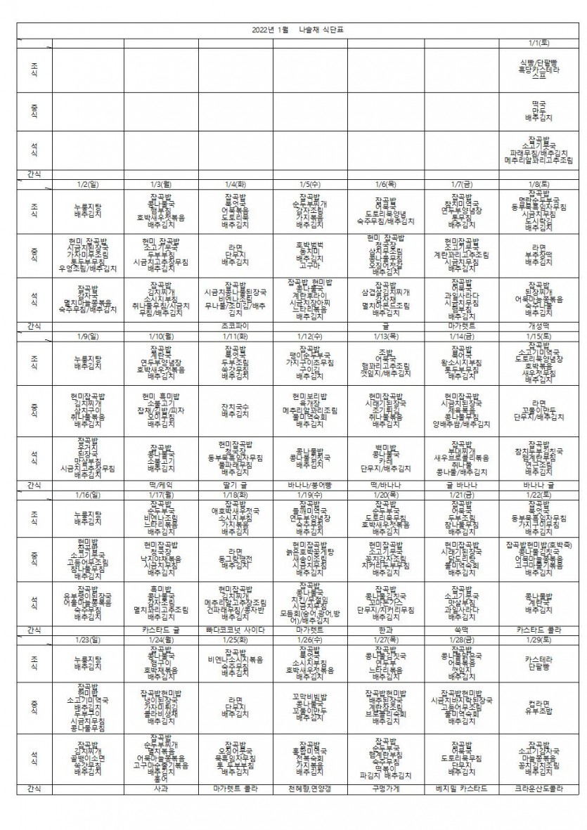 2022년 1월 나솔채 식단표 페이지 정보 작성자 나솔채 댓글 0건 조회 364회 작성일 22-05-12 09:25 목록 본문 2022년 1월 나솔채 식단표 댓글 0 댓글목록 등록된 댓글이 없습니다.